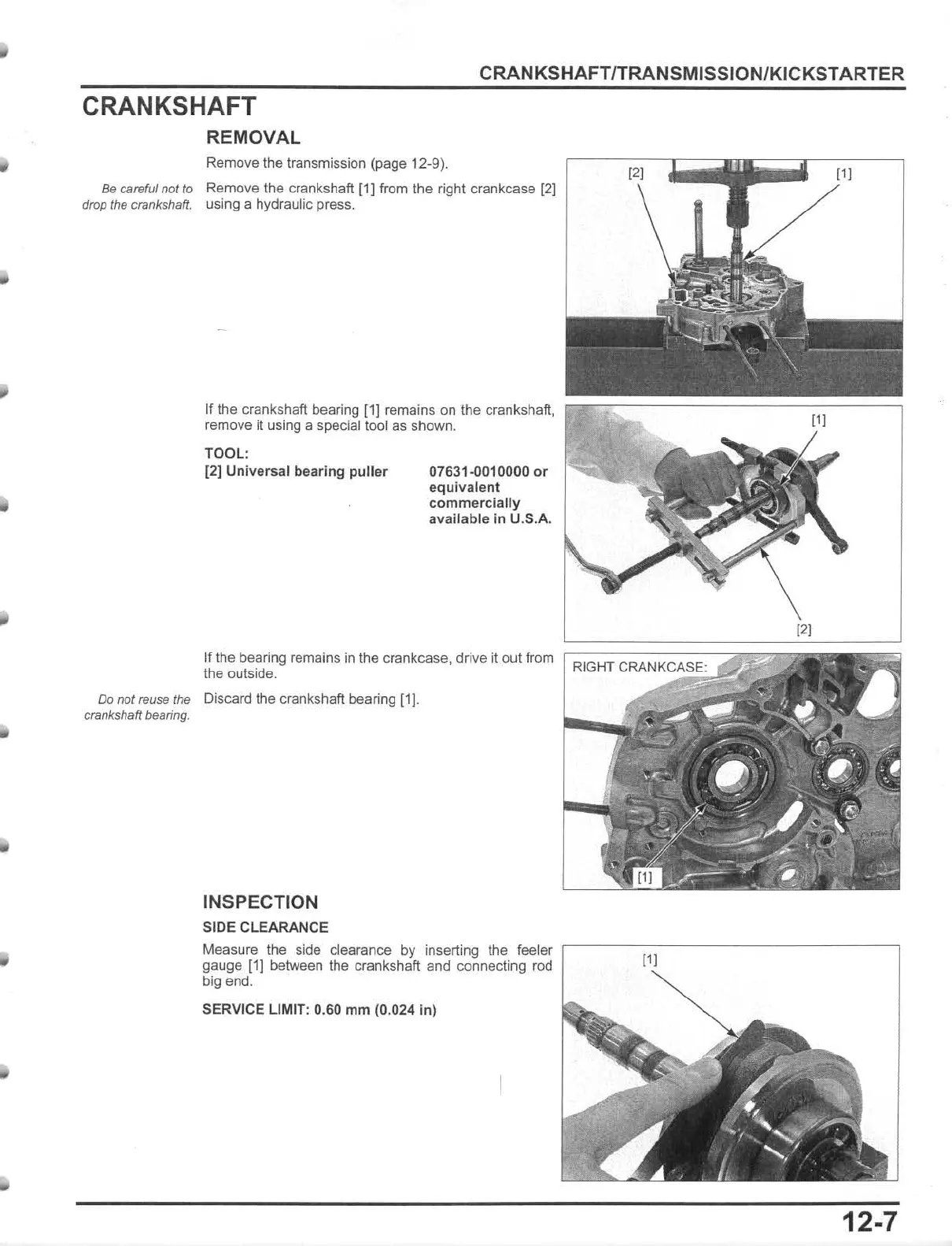 Remove the crankshaft [1] from the right crankcase