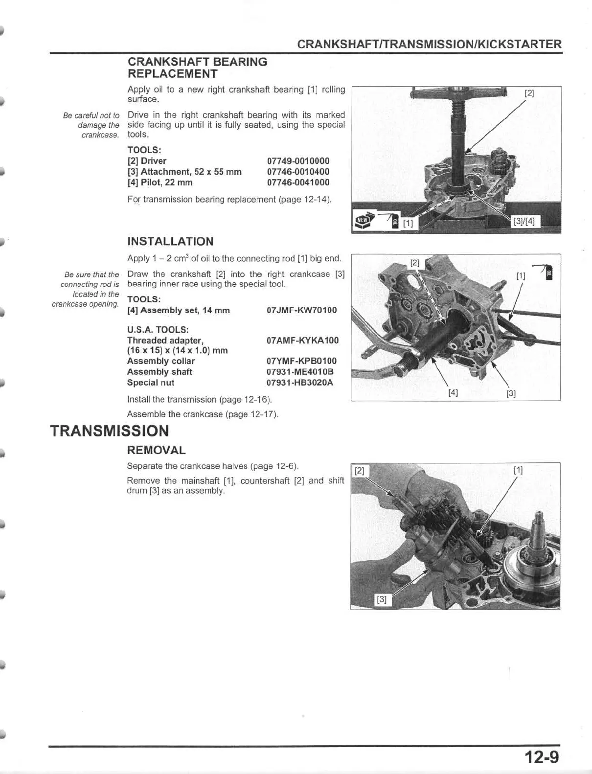 For transmission bearing replacement (page 12-14),