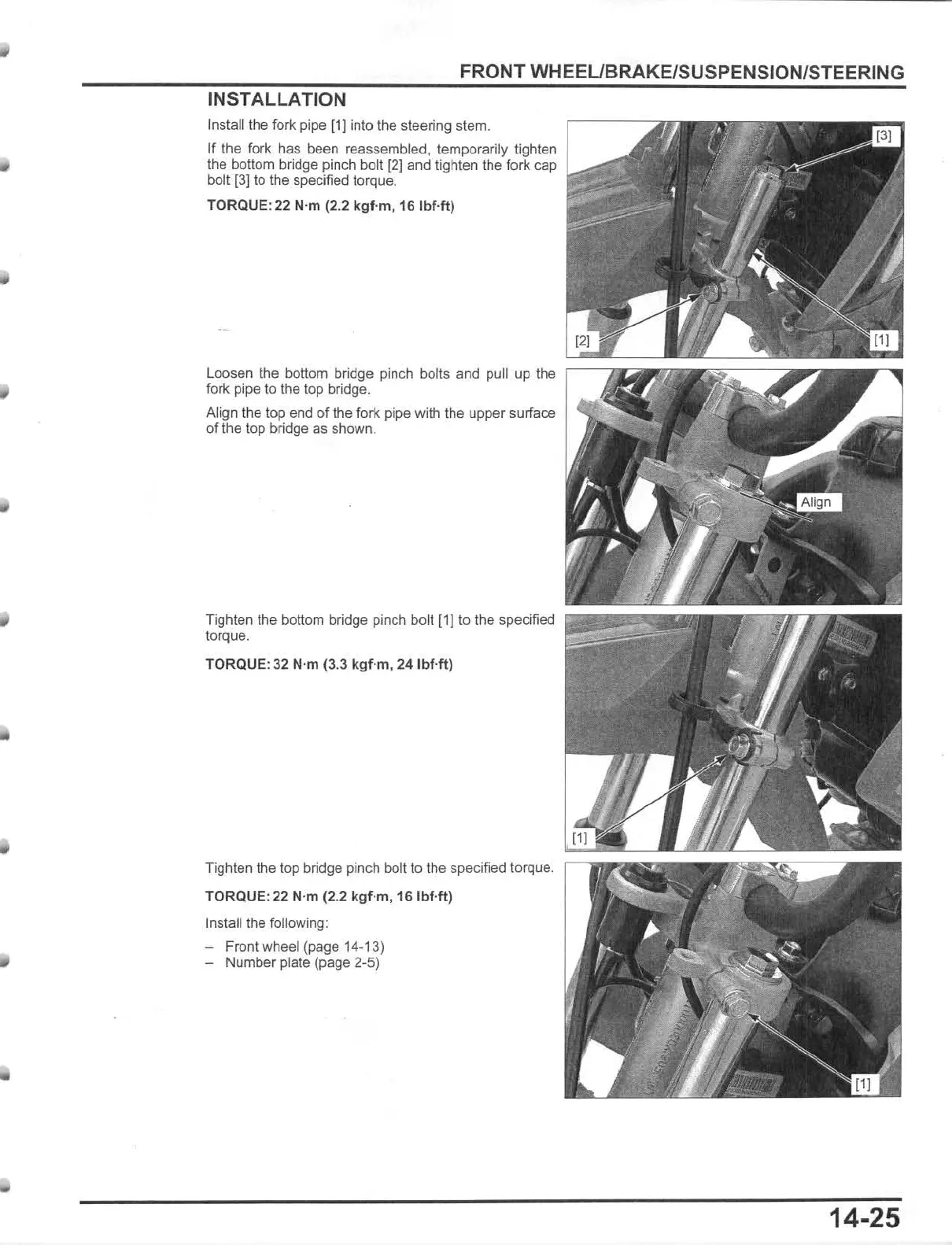 Tighten the bottom bridge pinch bolt [1)10 the specified