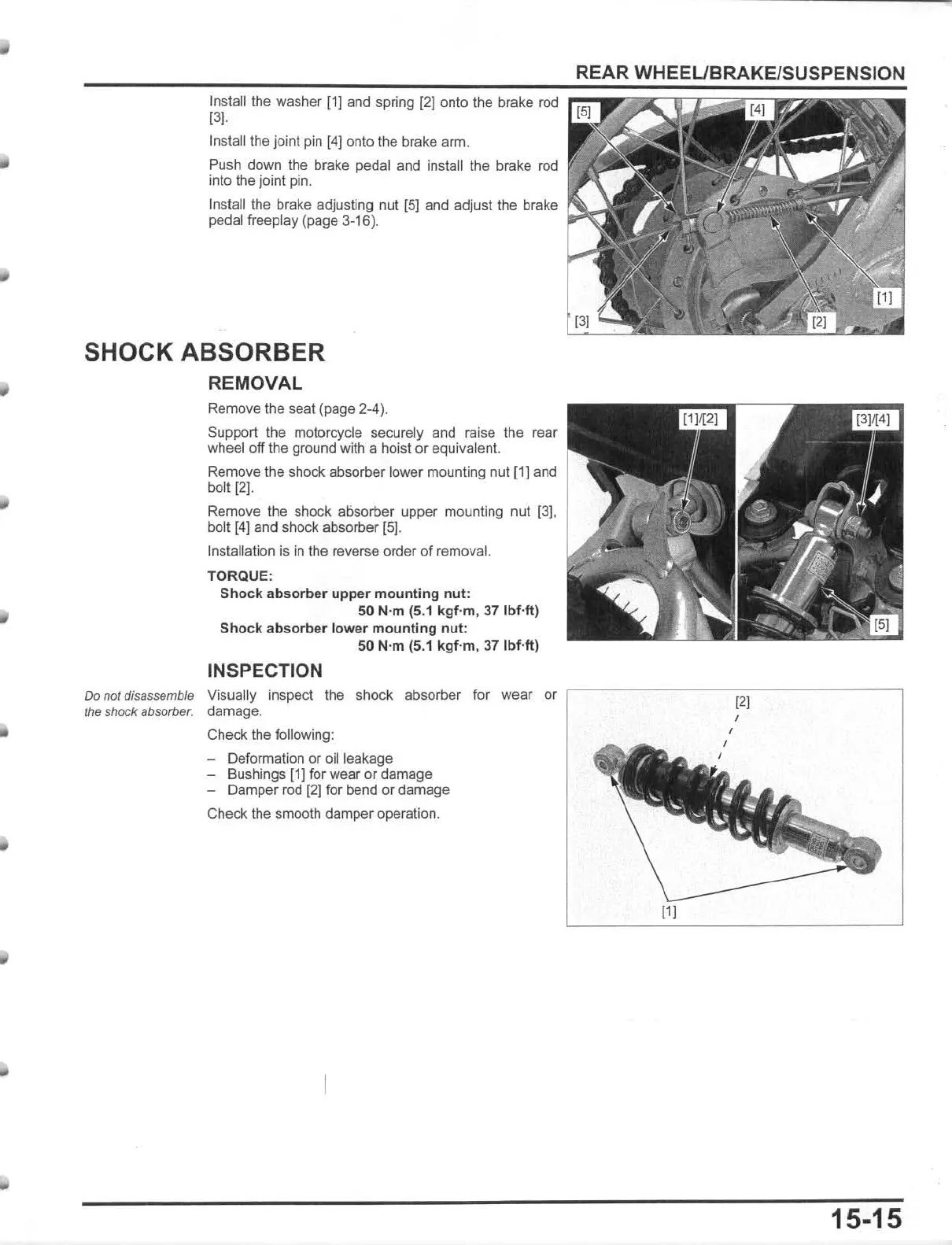 Do not disassemble Visually inspect the shock absorber for wear or