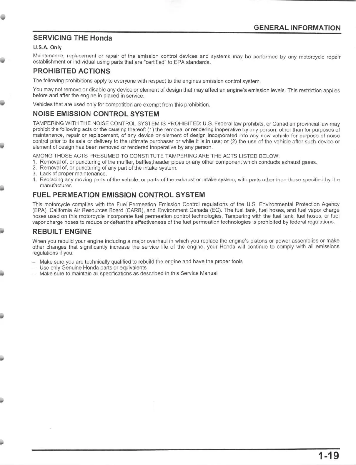 This motorcycle complies with the Fuel Permeation Emission Control regulations