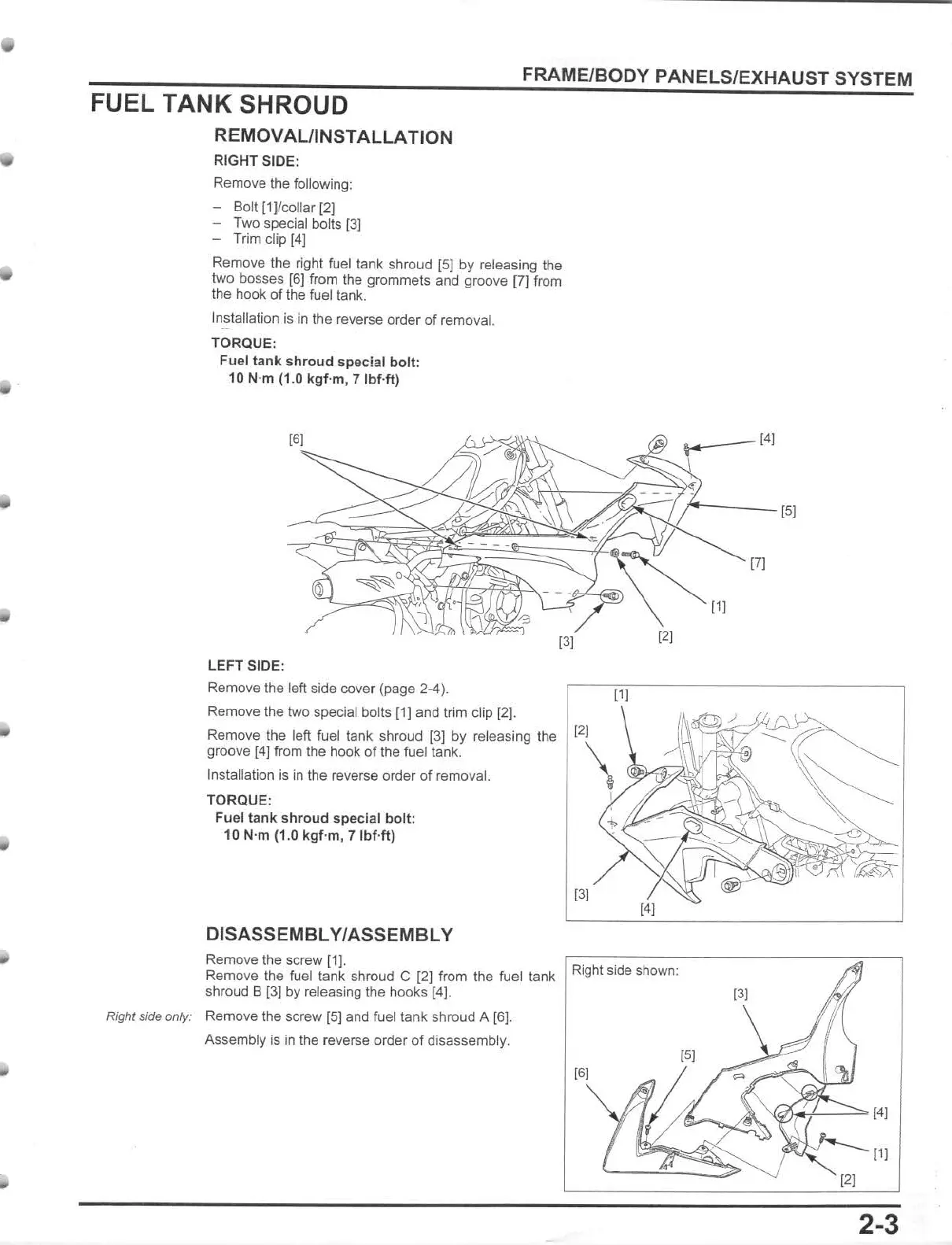 Remove the left fuel tank shroud [3] by releasing the