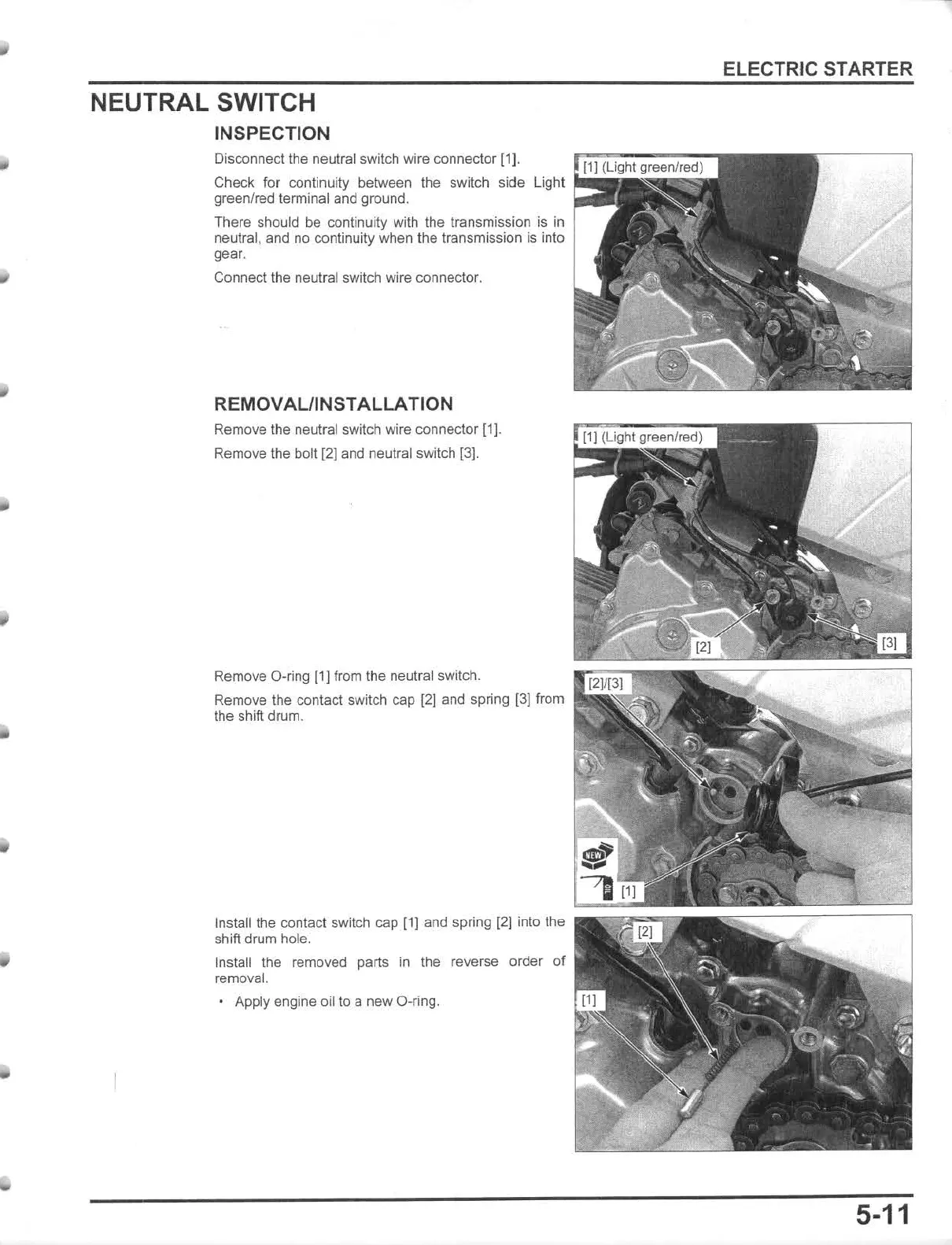 Remove the bolt (2] and neutral switch [3].