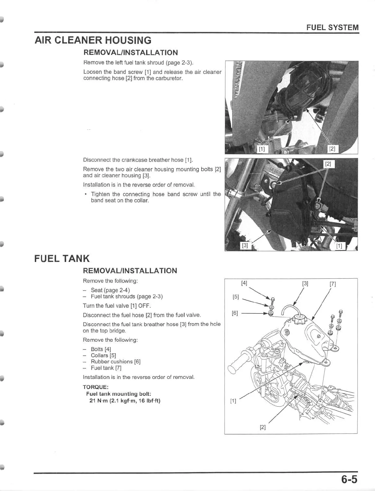 Honda CRF110F - Air Cleaner Housing Removal;Installation; Fuel Tank Removal;Installation