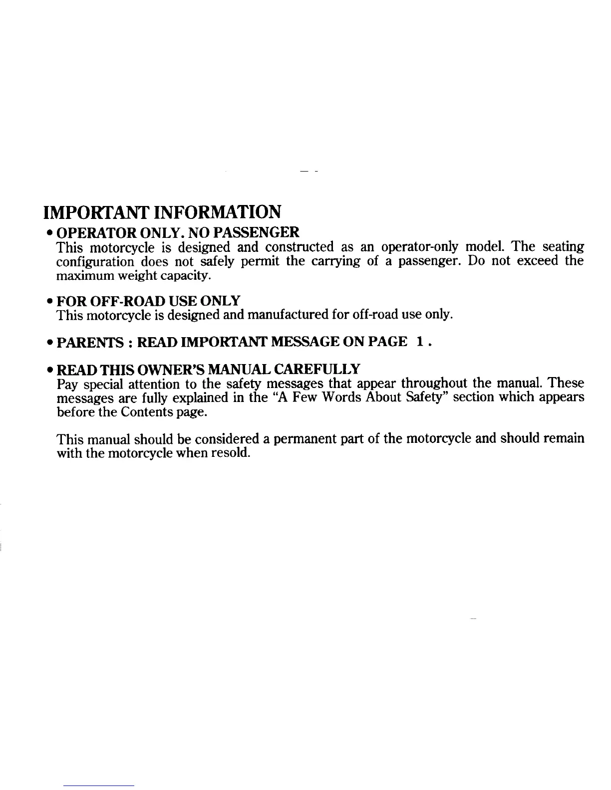 Honda CRF80F - Important Information