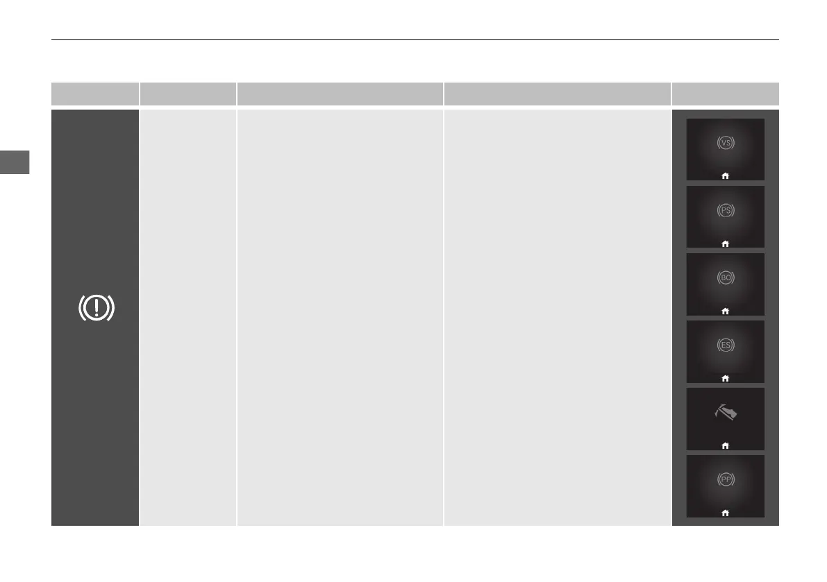 Indicator Name On/Blinking Explanation Message