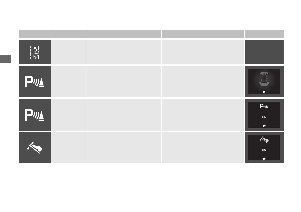 Comes on when parking sensor is
