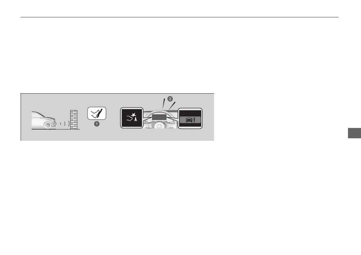 When the vehicle is stopped or moving at less than 10 km/h (6 mph) and there is an