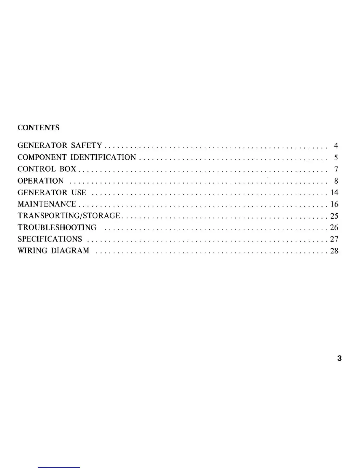 Honda E3500 - Contents