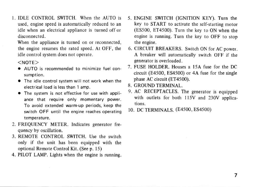Honda E4500 - Control Box Functions