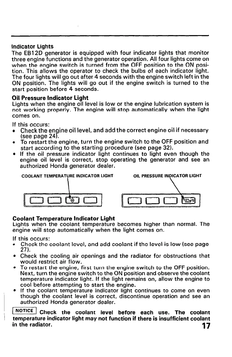 temperature indicator light may not function if there is insufficient coolant