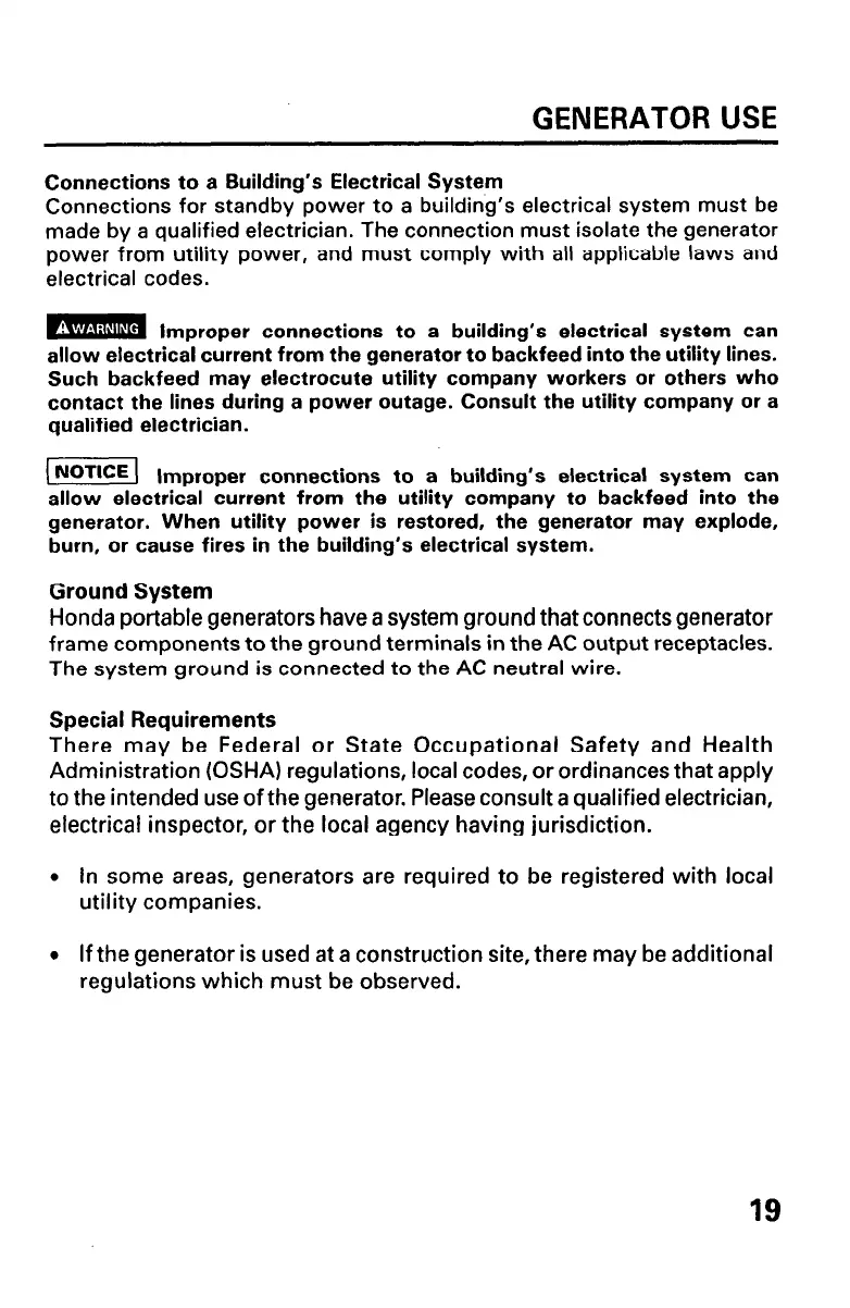 made by a qualified electrician. The connection must isolate the generator