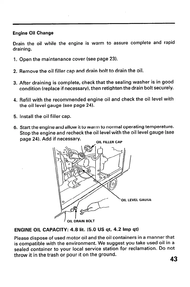 Please dispose of used motor oil and the oil containers in a manner that