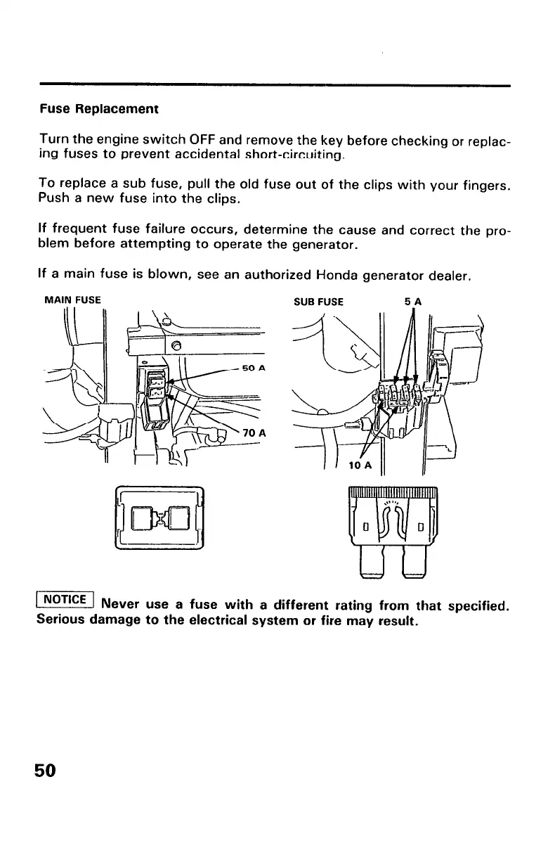 If a main fuse is blown, see an authorized Honda generator dealer.