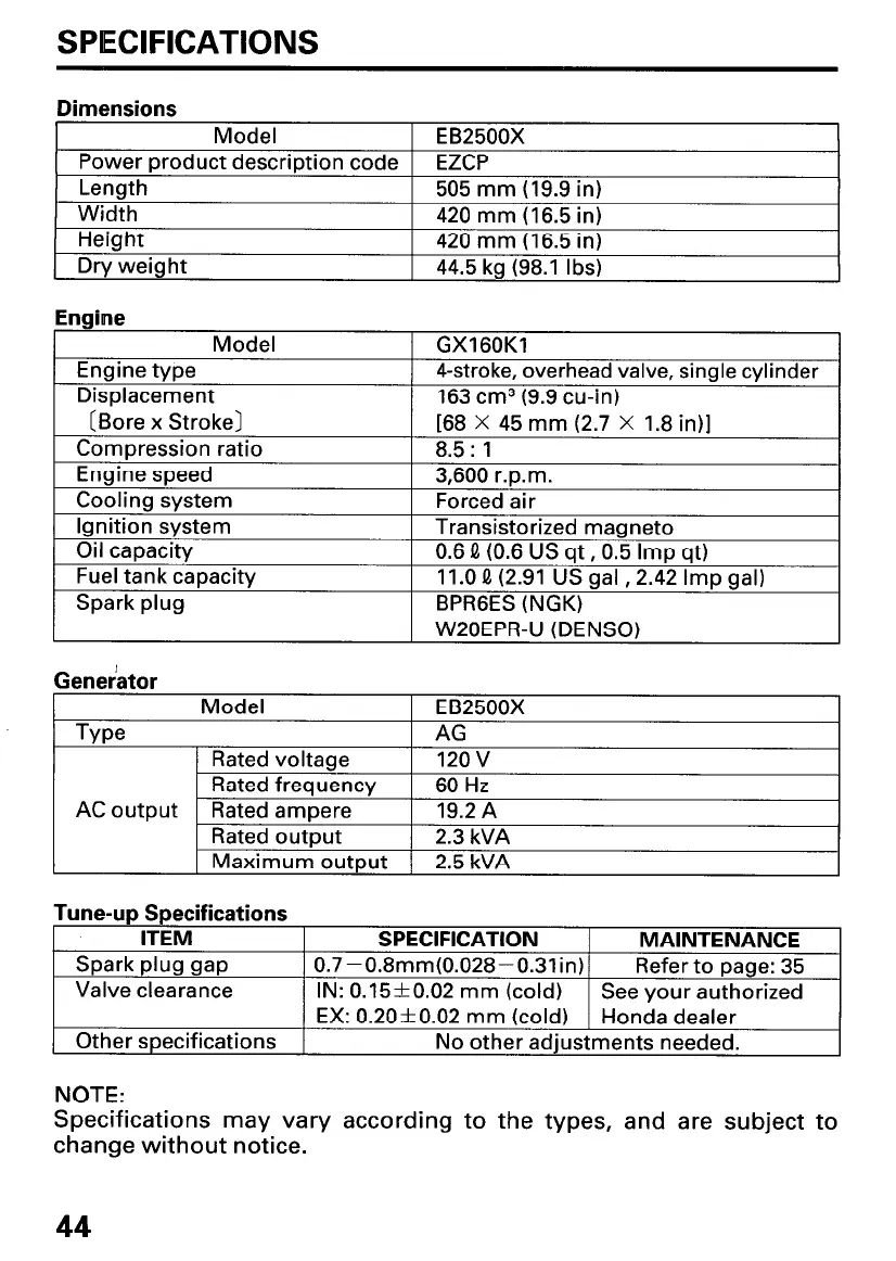 SPECIFICATIONS