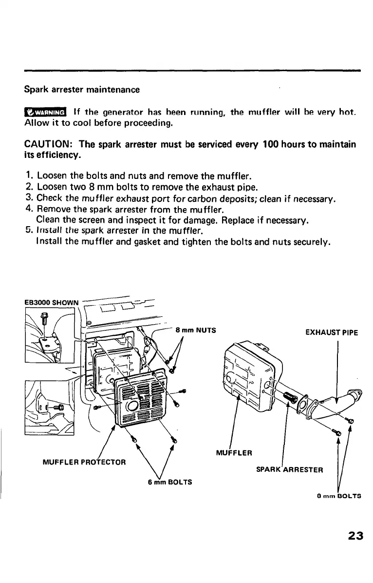 CAUTION: The spark arrester must be serviced every 100 hours to maintain