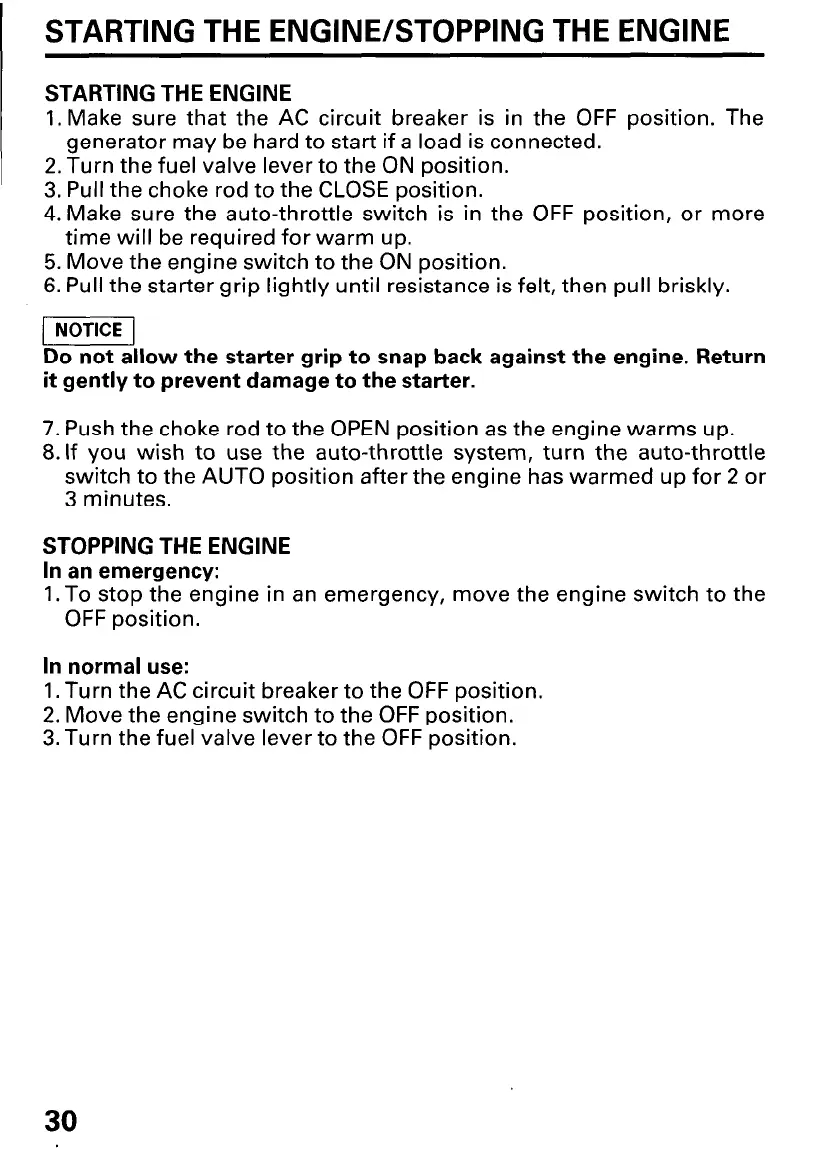 6. Pull the starter grip lightly until resistance is felt, then pull briskly.