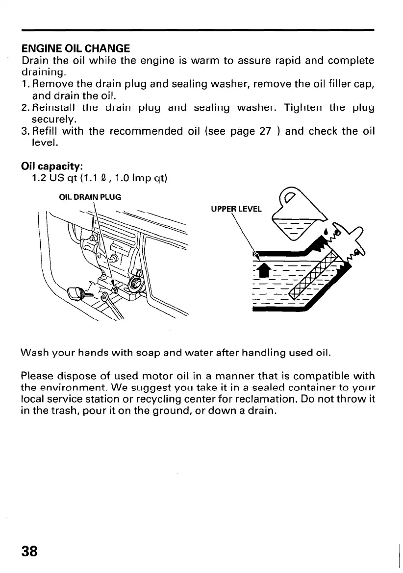 3. Refill with the recommended oil (see page 27 ) and check the oil