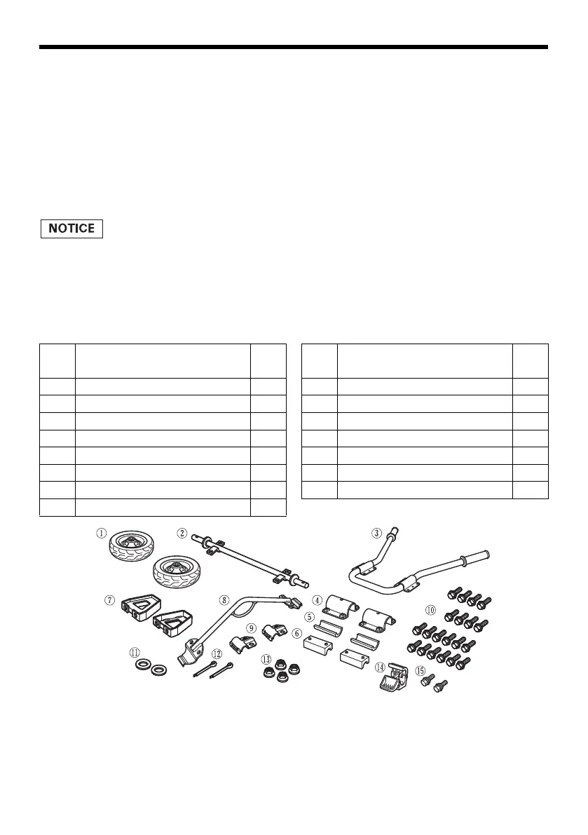 Check all loose parts against the following list. Contact your dealer if any of the
