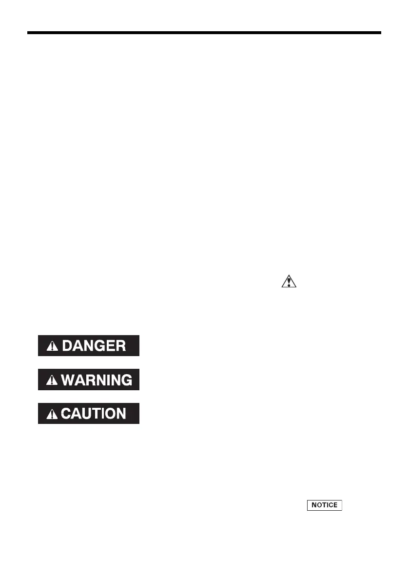 • Safety Messages — preceded by a safety alert symbol and one of three