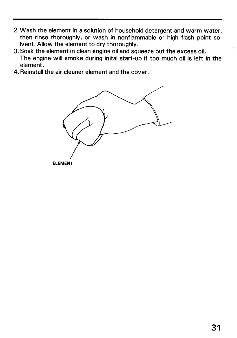 3. Soak the element in clean engine oil and squeeze out the excess oil.