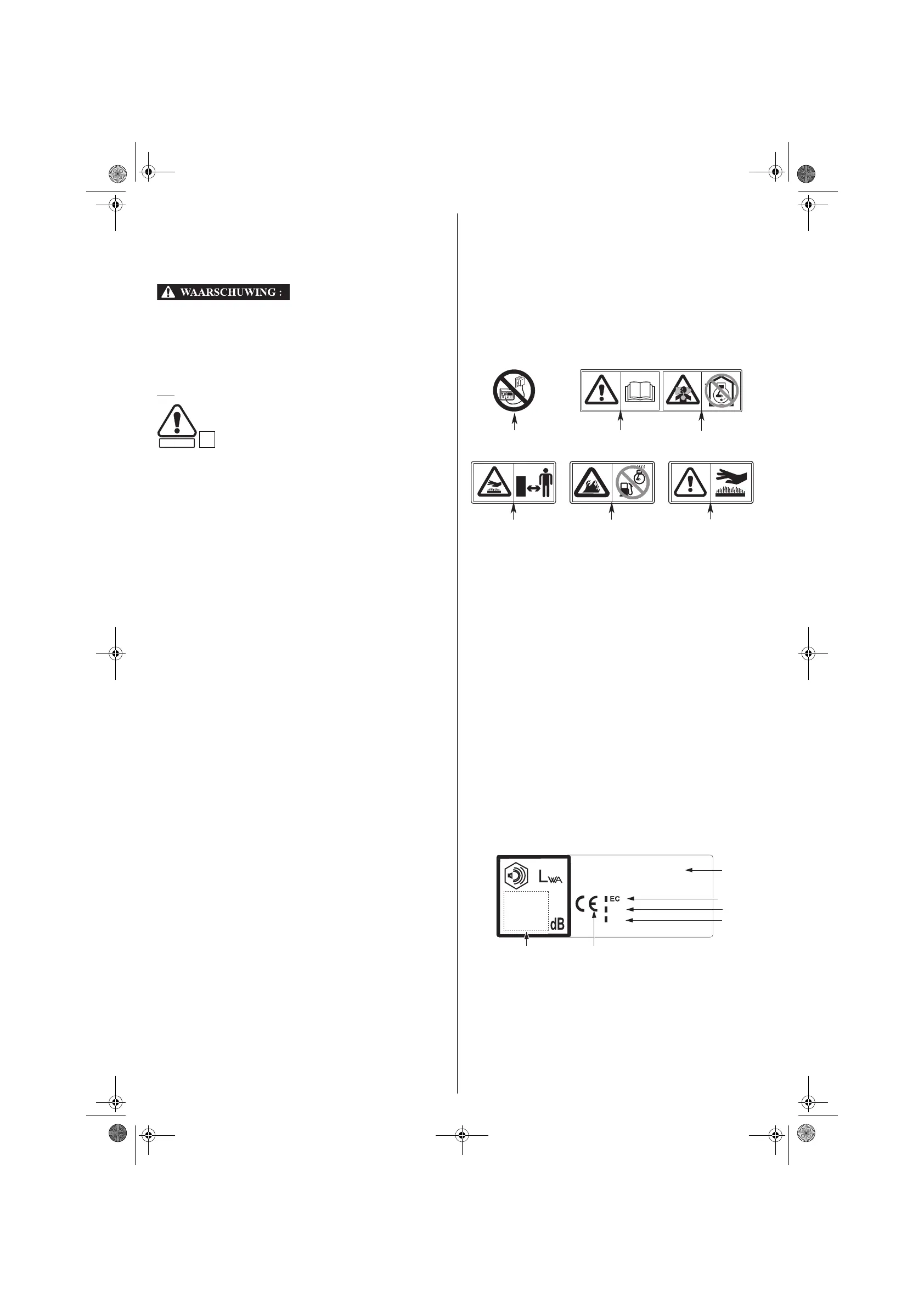 tot voorzichtigheid te manen is uw maaier voorzien van een aantal