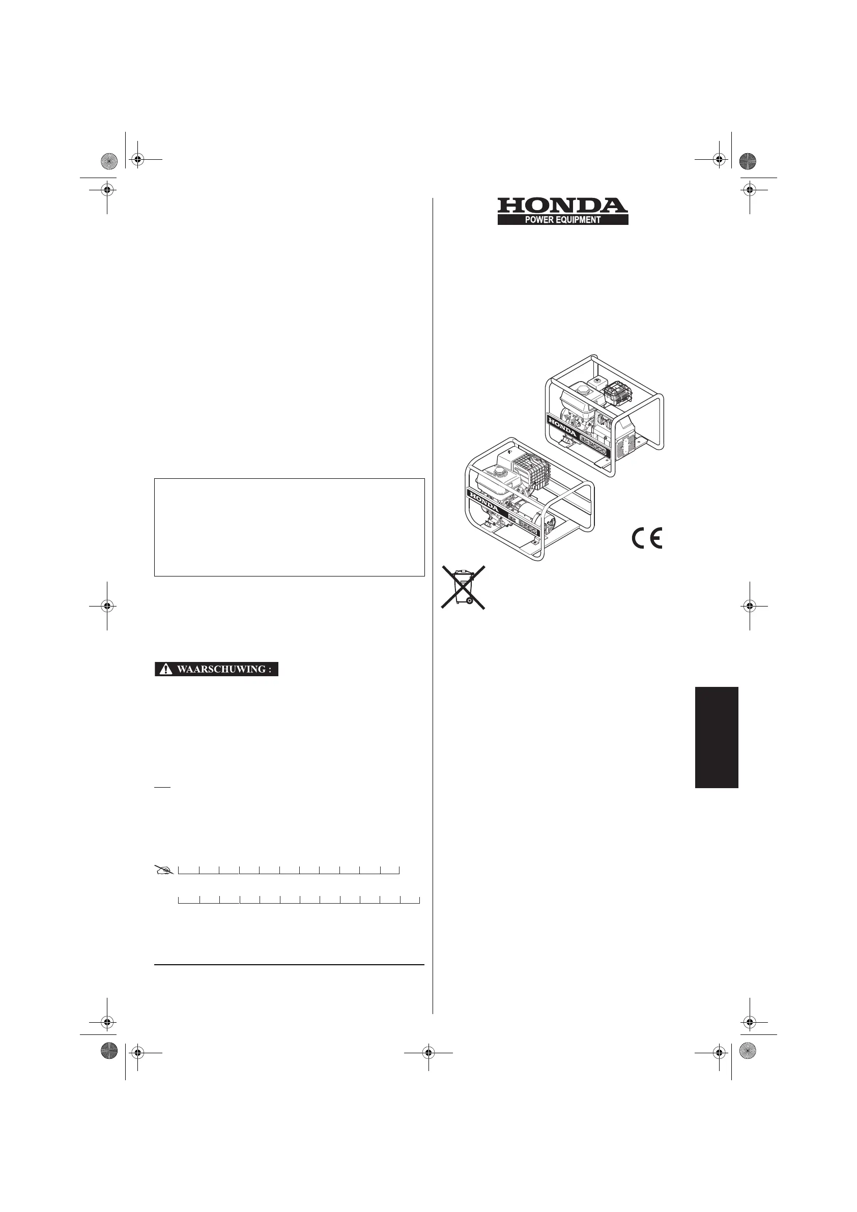 stroomaggregaat. Wij raden U aan haar zorgvuldig door te lezen