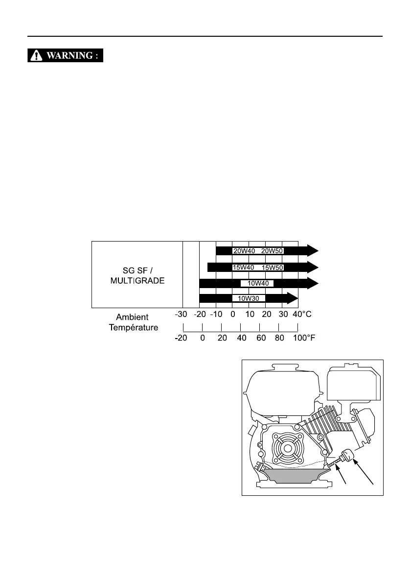 categories SG, SF, CC or CD. SAE 10W30 oil is recommended for general use at all