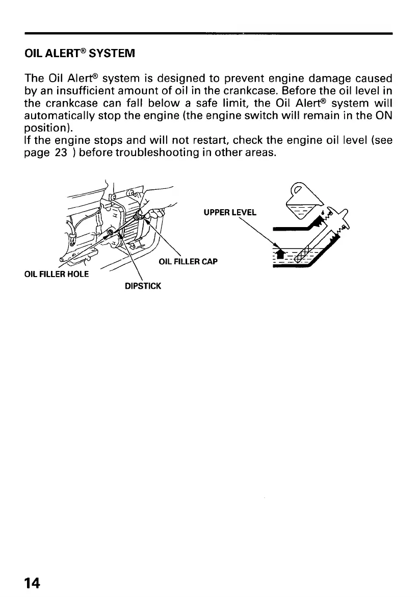 The Oil Alert@ system is designed to prevent engine damage caused