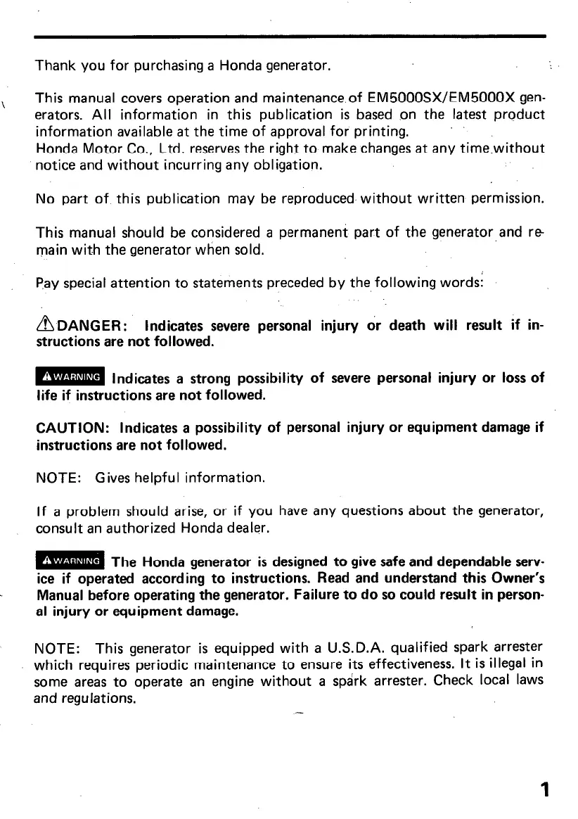 m The Honda generator is designed to give safe and dependable serv-