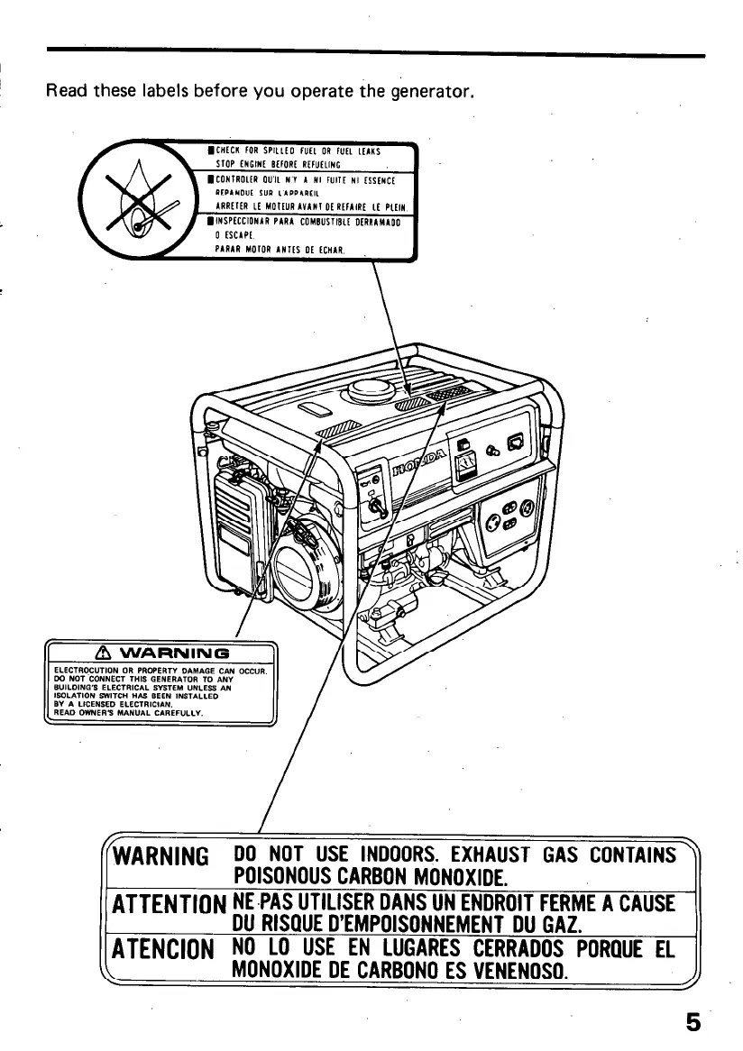 FWARNING DO NOT USE INDOORS. EXHAUST GAS CDNTAlNS>