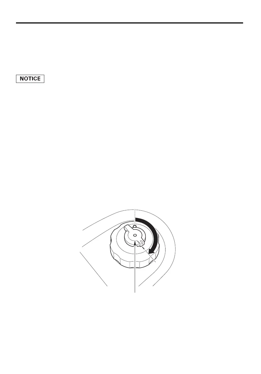 Turn the fuel tank cap vent lever to the ON position.