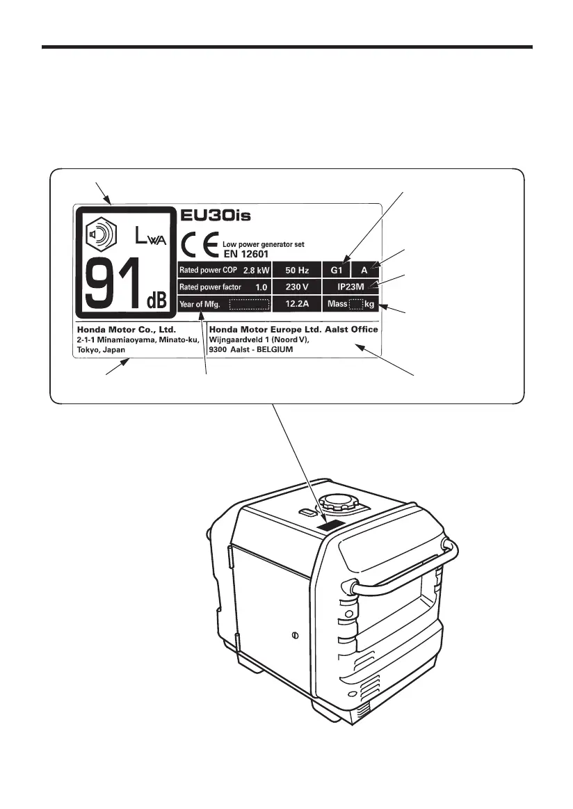 • Emplacement de la marque CE et des étiquettes sur les émissions