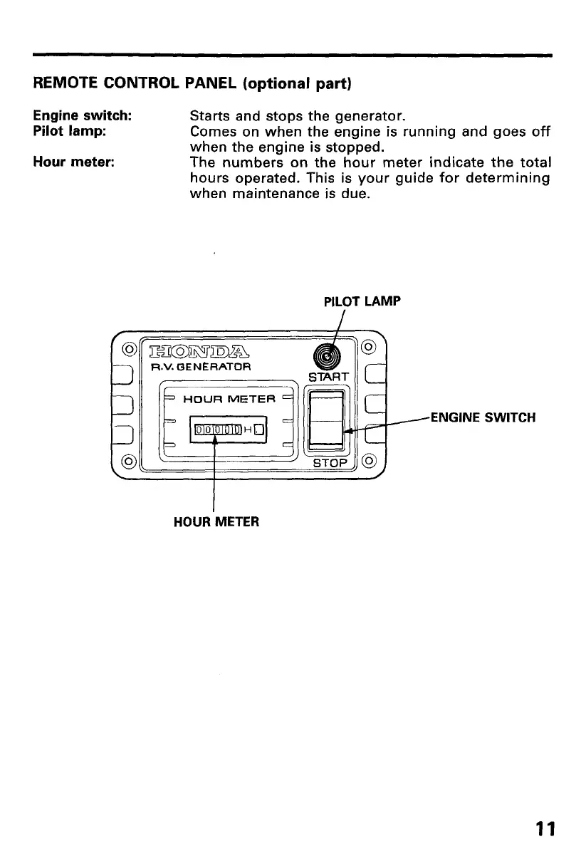 Honda EV6010 - Remote Control Panel (Optional Part)