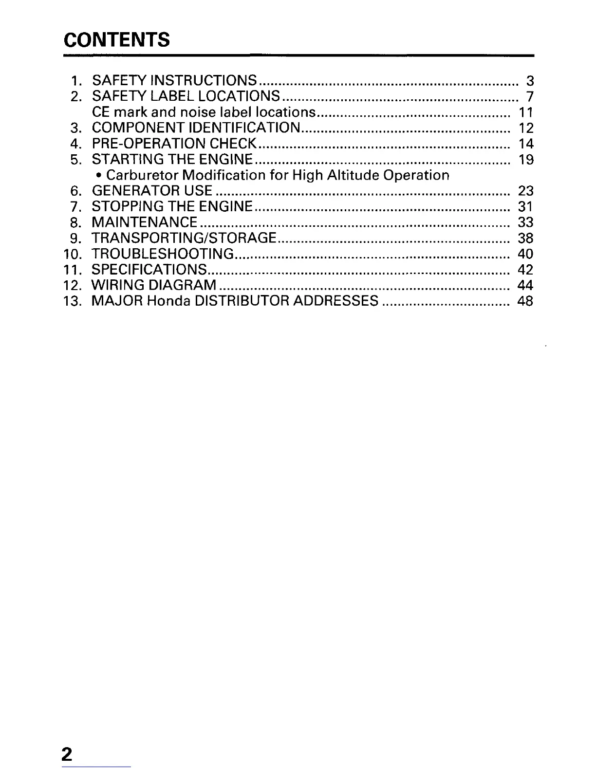 Honda EX7 - Contents