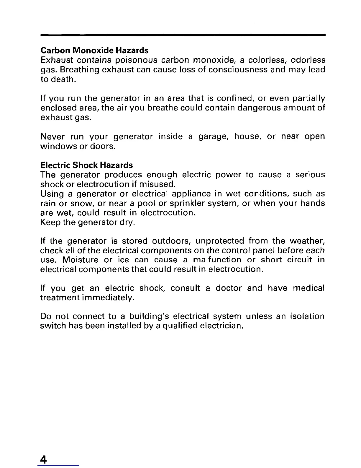 Honda EX7 - Carbon Monoxide Hazards; Electric Shock Hazards