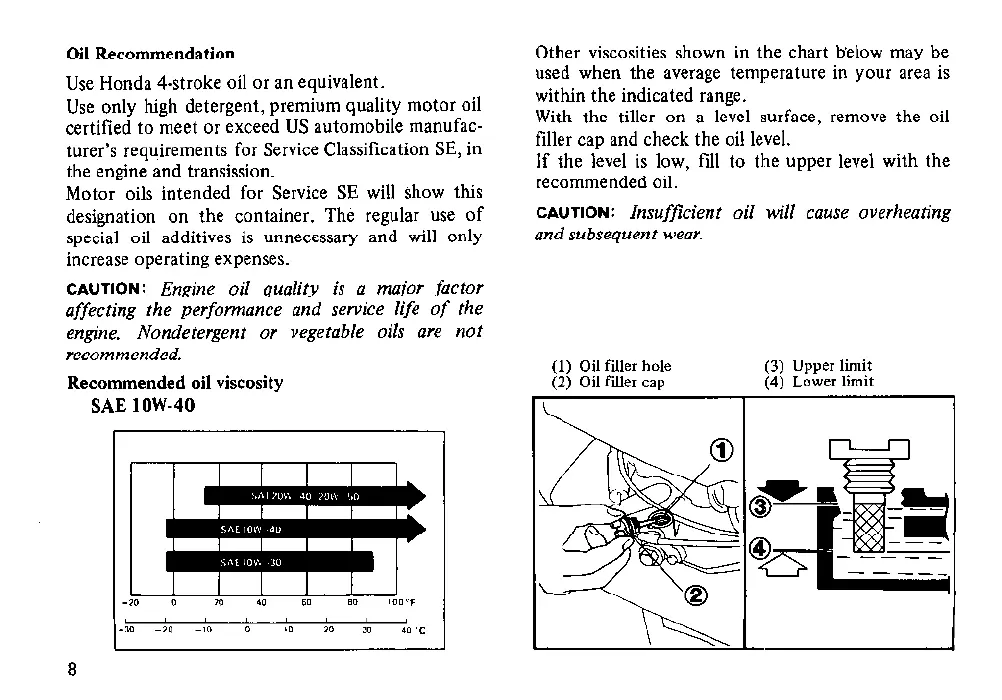 (1) Oil filler hole (3) Upper limit