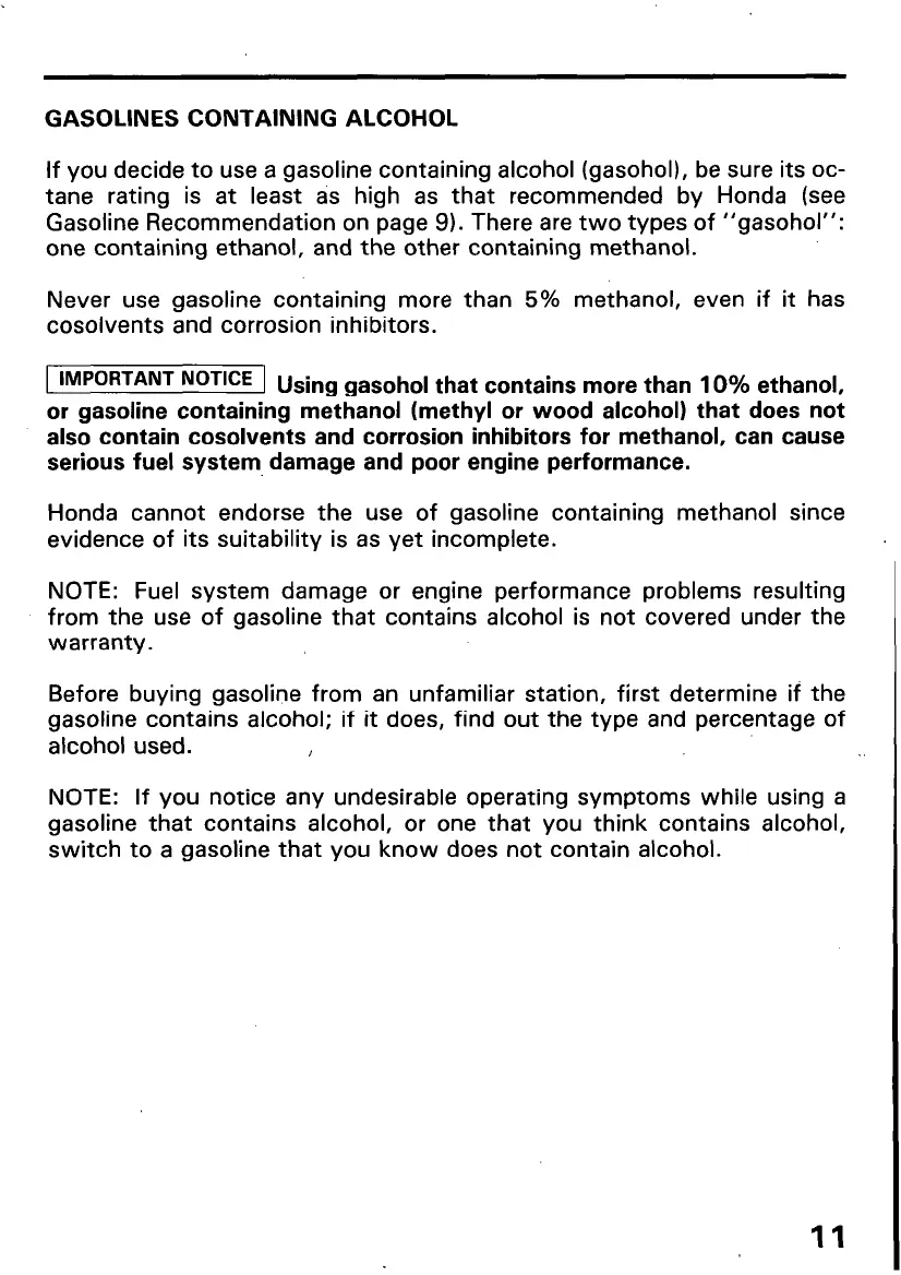 Gasoline Recommendation on page 9). There are two types of “gasohol”: