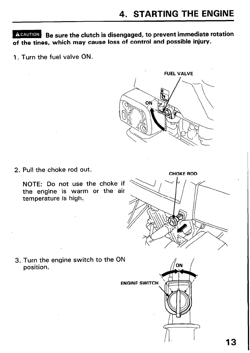 Be sure the clutch is disengaged, to prevent immediate rotation