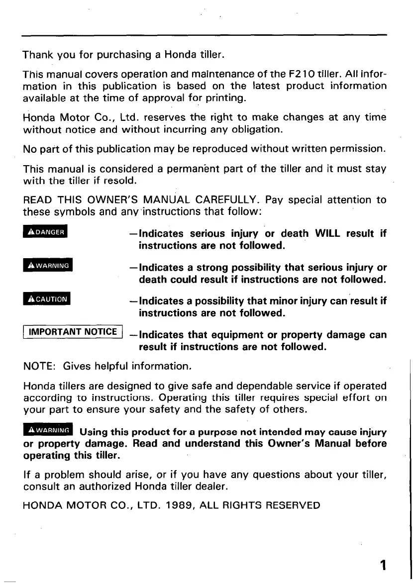 Thank you for purchasing a Honda tiller.