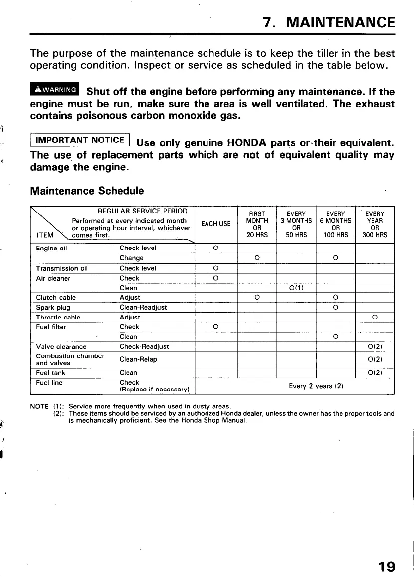 1 IMPORTANT NoTlCE 1 Use only genuine HONDA parts or-their equivalent.