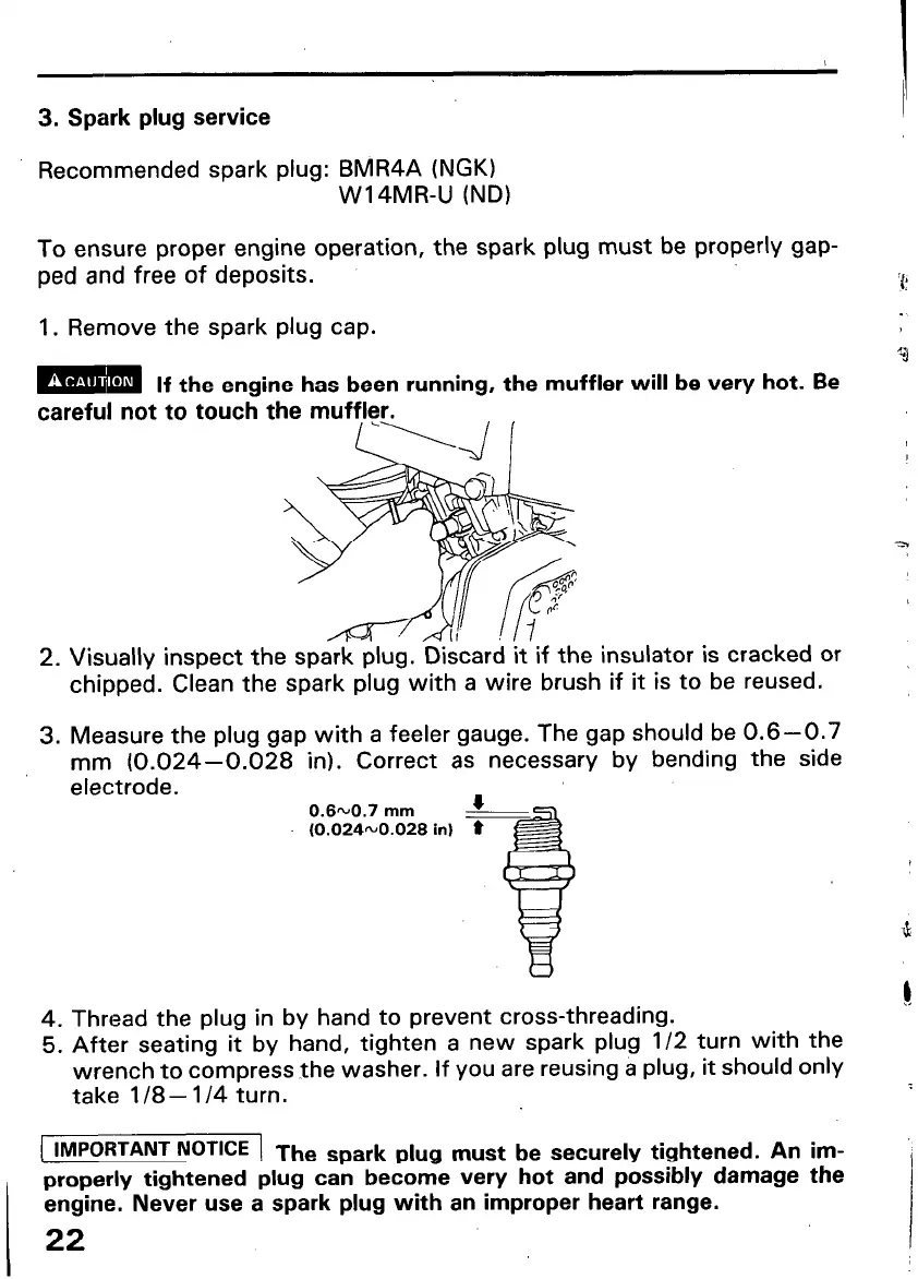 HWORTANT NOTlCE The spark plug must be securely tightened. An im-