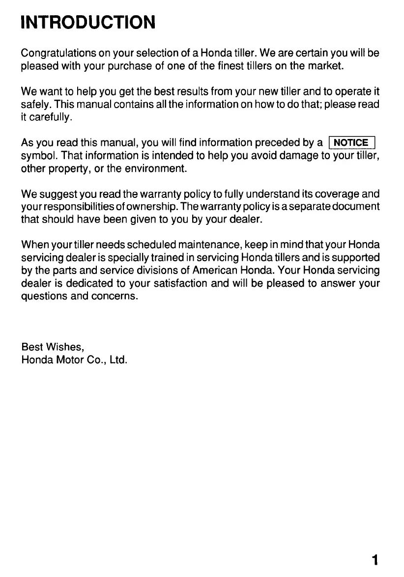 Congratulations on your selection of a Honda tiller. We are certain you will be