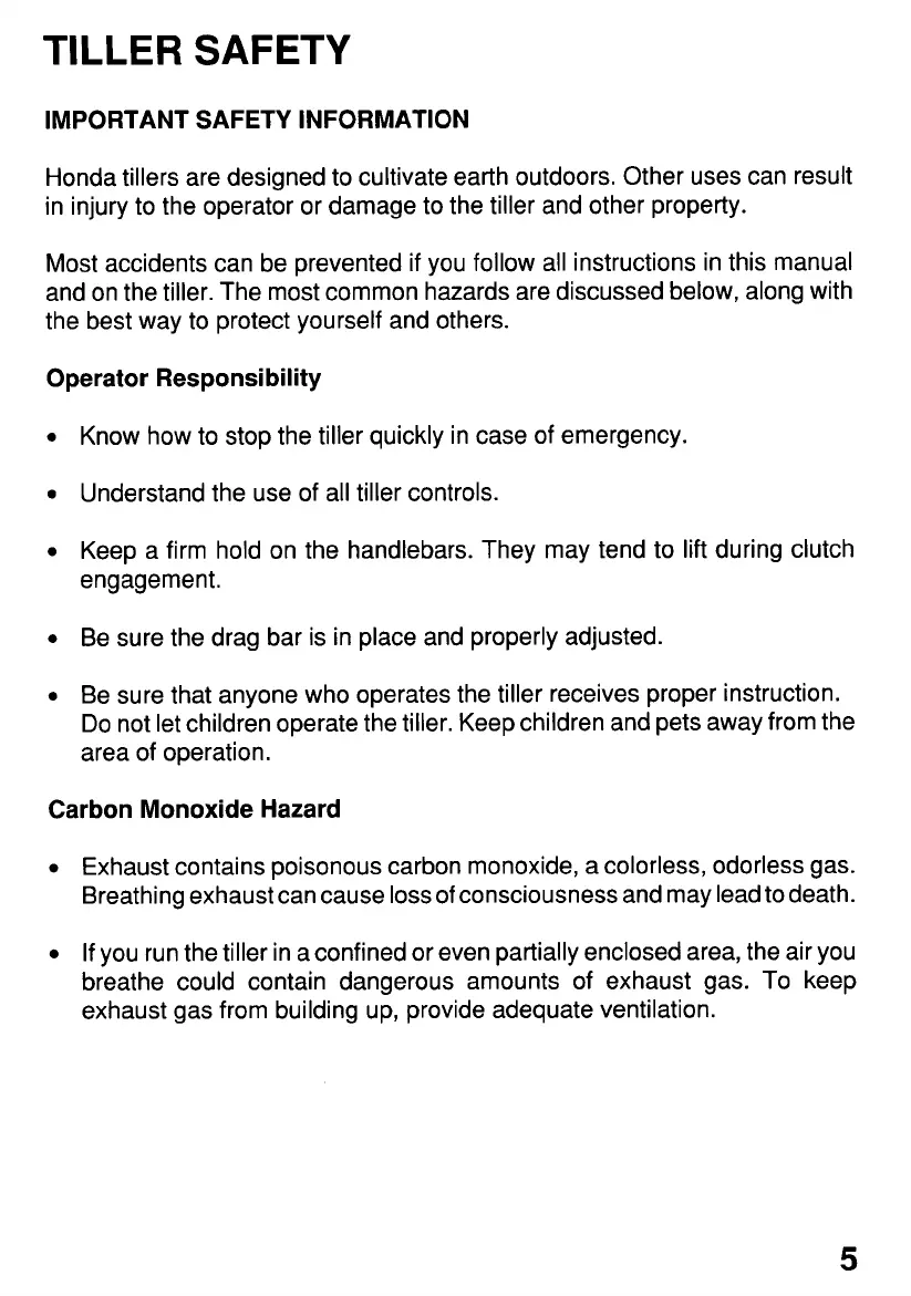 in injury to the operator or damage to the tiller and other property.