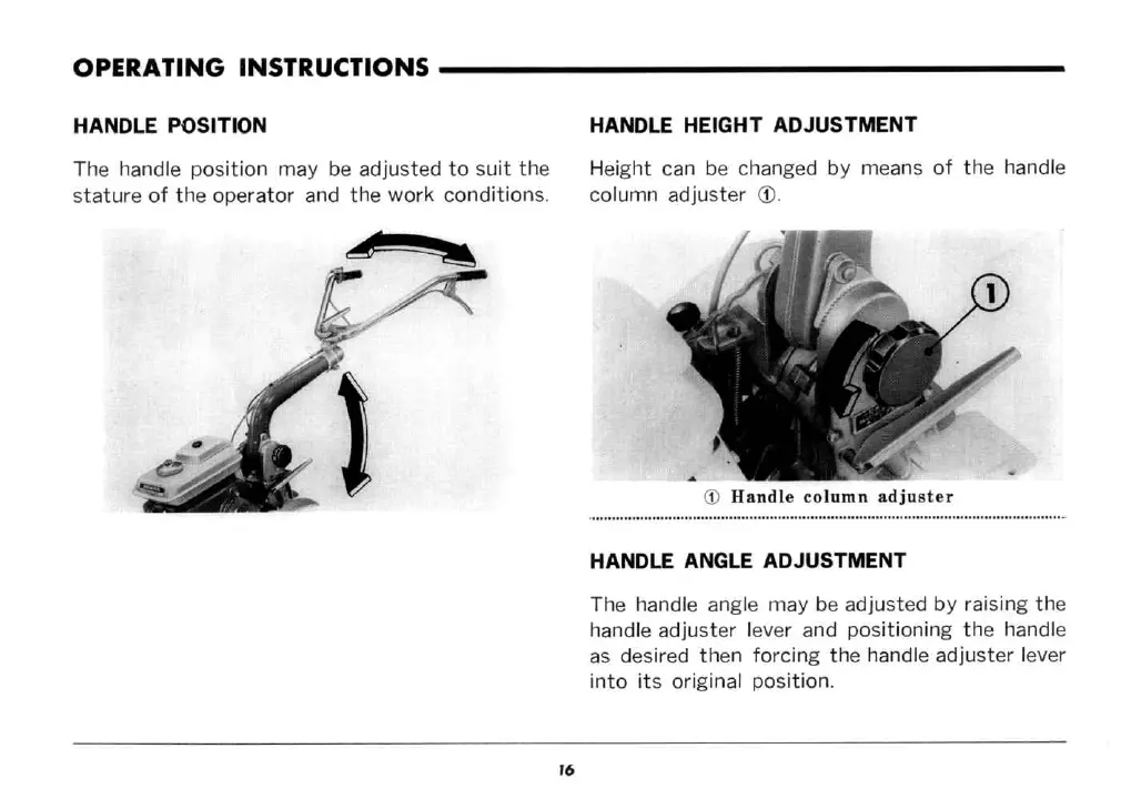 Honda F28 - Operating Instructions; Handle Position; Handle Height;Angle Adjustment
