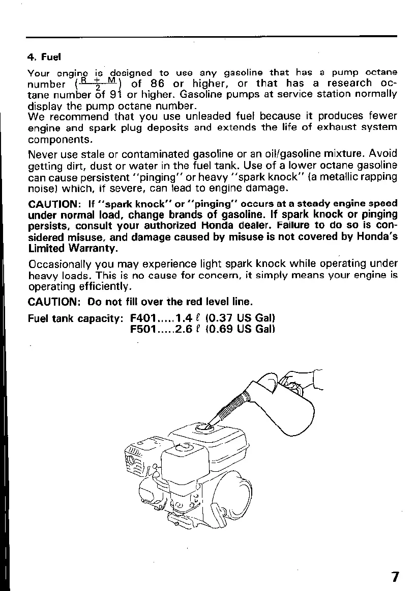 getting dirt, dust or water in the fuel tank. Use of a lower octane gasoline