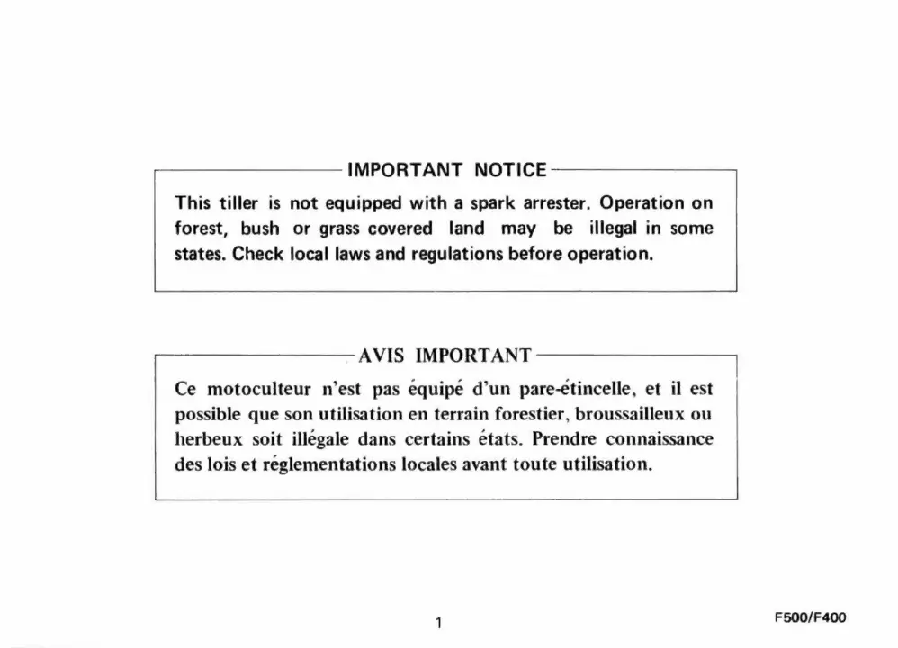 Honda F500 - Avis Important