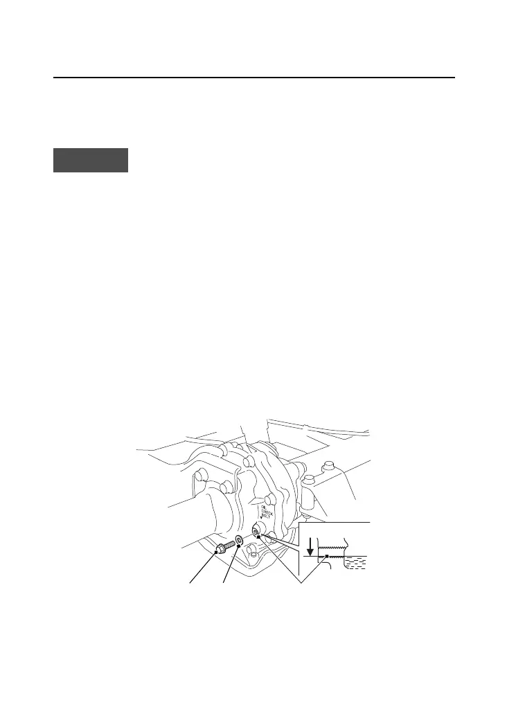 oil starts to flow out of the oil level check hole (7). Allow oil to