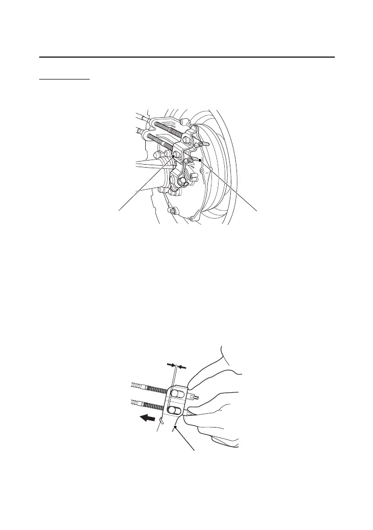 Adjust the freeplay of the rear brake pedal. Push the brake arm
