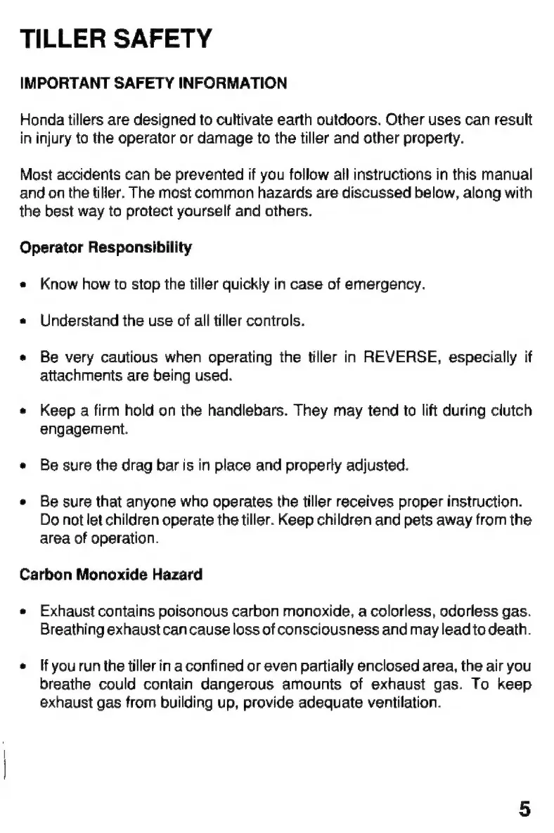 Honda FR750 - TILLER SAFETY; IMPORTANT SAFETY INFORMATION
